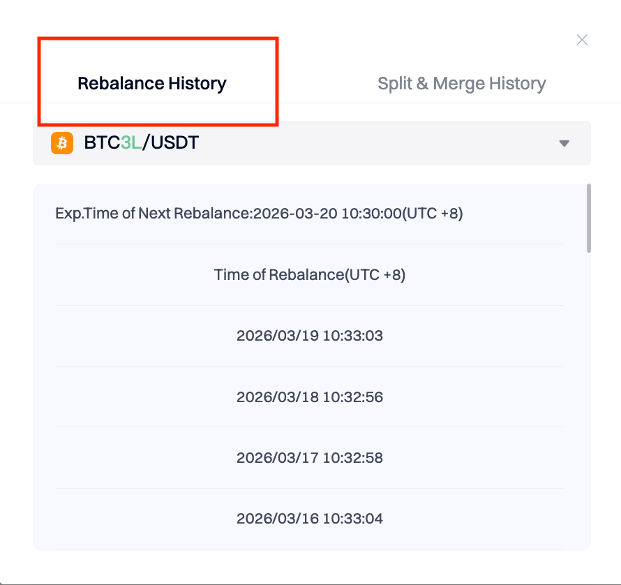 7. The platform rebalances leveraged token positions daily at 2:30 a.m. UTC in order to ensure a fixed multiplier between the daily returns of a leveraged token and the spot returns of the corresponding underlying asset. If the market fluctuates sharply and the price swing range of the underlying asset exceeds the given range set at the previous rebalance point, the platform will make a temporary rebalance to reduce trading risks. The temporary rebalance only targets the products that suffer losses due to market fluctuations. AscendEX will announce position rebalance history on a daily basis and users can visit the Rebalance page to check details.