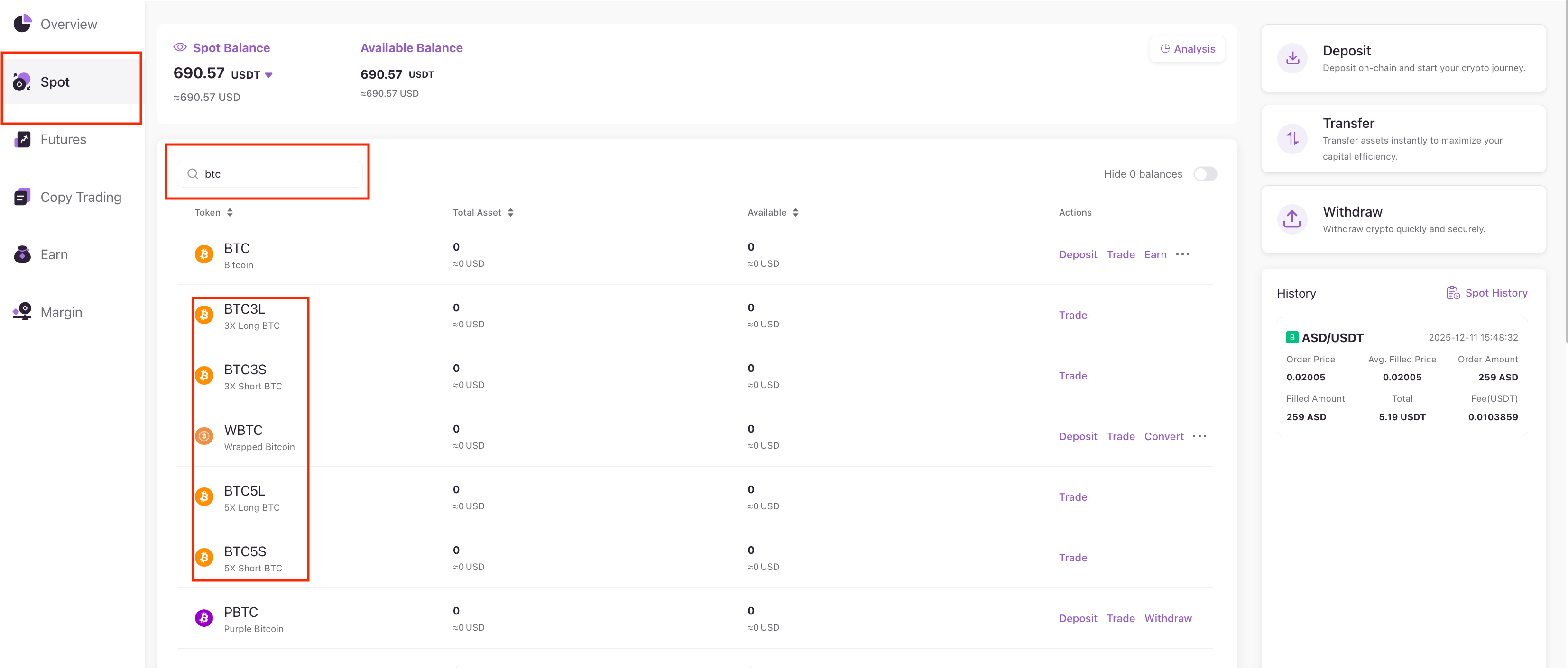 Like spot trading, users can directly trade leveraged tokens on the spot markets.