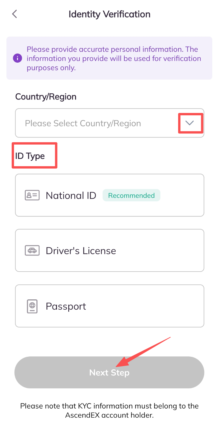 4.Choose Your Country/Region ,ID Type, then click Next Step button