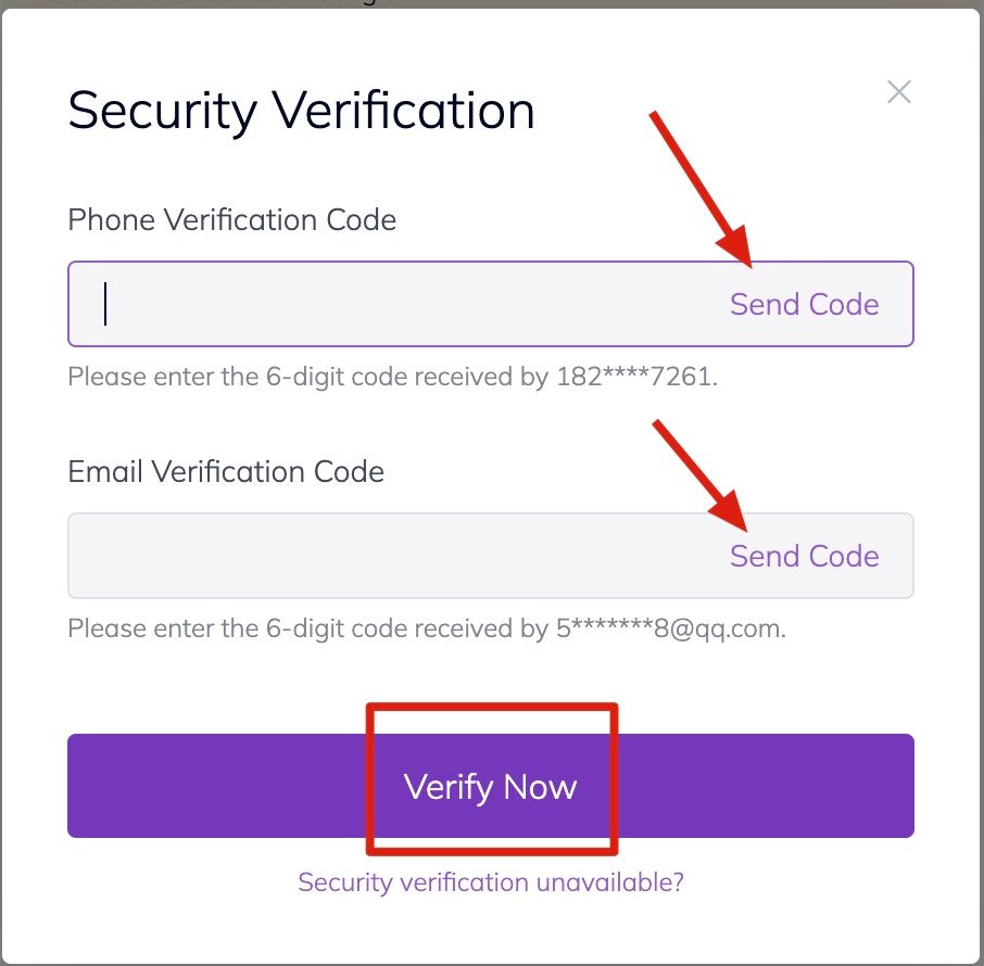 4. Click [Send Code], enter the email/SMS verification code that you received and click on [Verify Now].