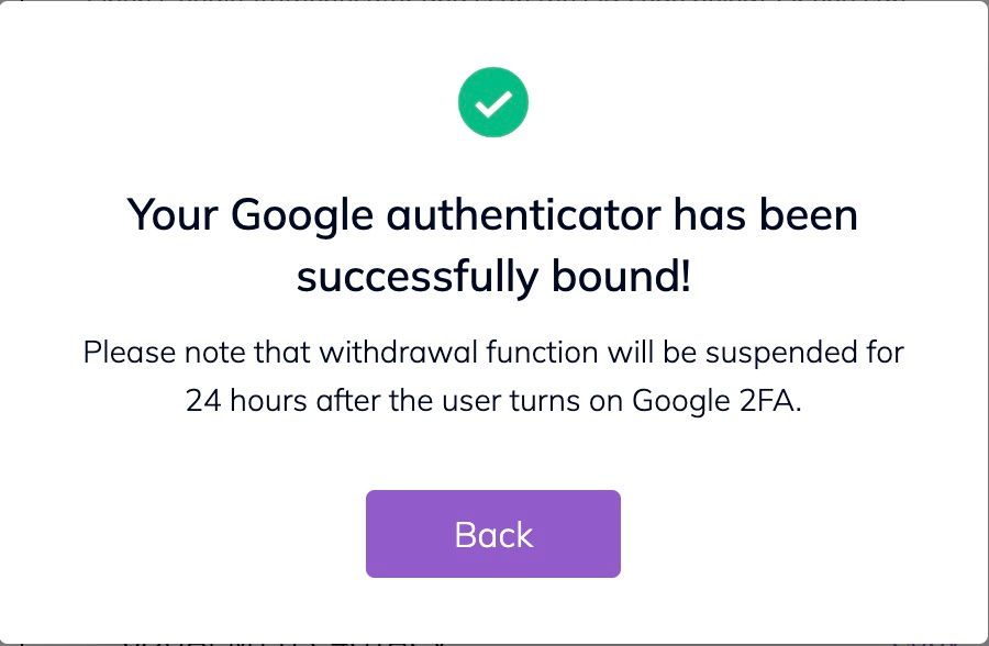 11. A pop-up message will appear when the binding is successful. Please note that withdrawal function will only be available at 24 hours after that for security reason.