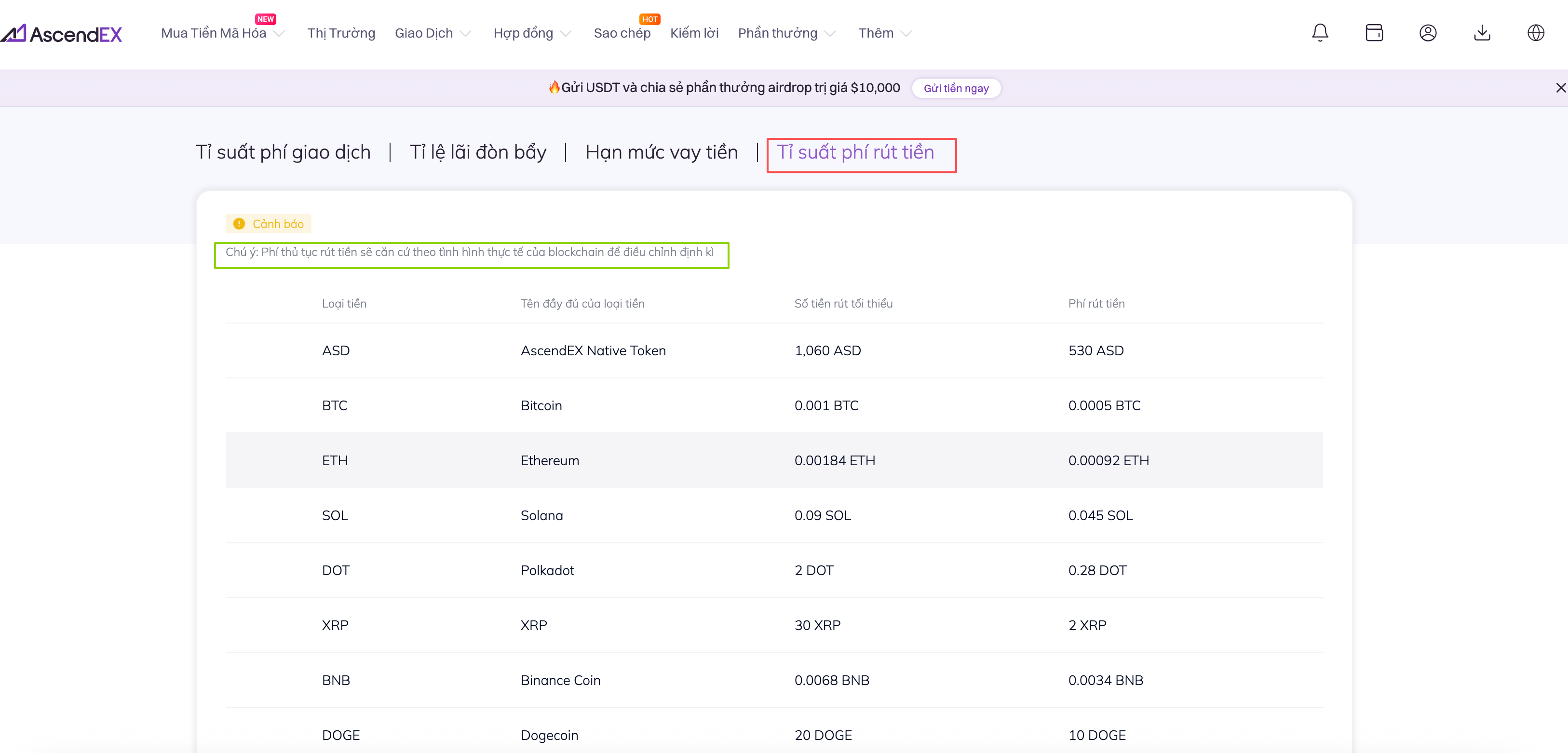 Khi người dùng rút tài sản kỹ thuật số từ nền tảng AscendEX về một địa chỉ ngoài nền tảng, người dùng cần trả phí rút tiền. Phần phí này sẽ được dùng làm phần thưởng cho những người đào coin hoặc các nút blockchain đang vận hành và xác minh các giao dịch để đảm bảo hoạt động của mạng lưới blockchain.